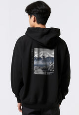 MOB07 Hoodie Gambar Belakang Keren Gunung Fuji Bahan Scuba Hitam