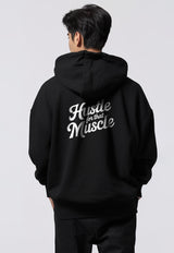 MOB19 Hoodie Pria Premium ScubaLux Adem "hustle muscle" hitam