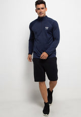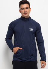 - Jaket running desain half-zip dengan tekstur lembut yang fleksibel