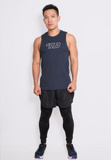 MS191 kaos olahraga gym pria sleeveless tangan kutung singlet tank top td outline dateng abu tua