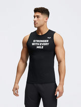 MSA03 kaos running lari pria kutung sleeveless tanktop 4way stretch nanoamid "stronger with every mile" hitam