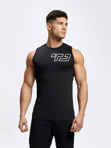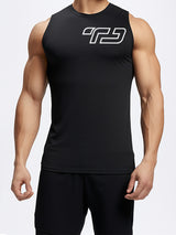 MSA06 kaos running lari pria kutung sleeveless tanktop 4way stretch nanoamid "med TD outline" hitam