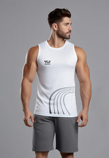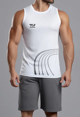 MSA52 Kaos Lari Gym Kutung Sleeveless Kutang Tank top drifit hitam "td active track outline" putih