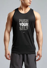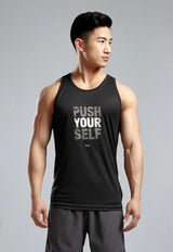 MSA53 kaos fitnes pria 4way stretch nanoamid anti bau "push yourself " hitam