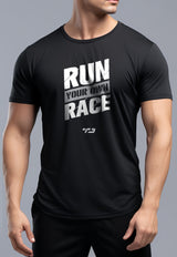 MSA72 Kaos Lari Lengan Pendek Pria "run your own race" AirdryLite hitam
