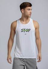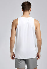 MSA79 kaos lari pria kutung tank top nanoamid stretch "never stop" putih