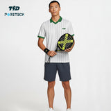 MSB11 Jersey Padel Pria Polo PoreTech "green ver stripes" putih hijau