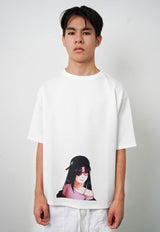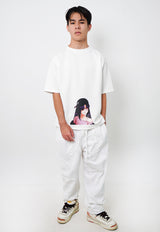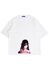 MTO67 kaos oversize gambar wanita wajah anime kartun manga bahan scuba tebal distro pria putih
