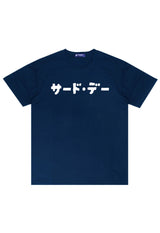 MTO73 kaos tulisan jepang lucu keren wobbly katakana thirdday instacool t shirt distro pria cowok tangan pendek navy