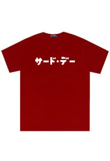 MTO76 kaos tulisan jepang lucu keren wobbly katakana thirdday instacool t shirt distro pria cowok tangan pendek summer maroon merah