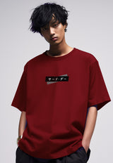 MTQ39 kaos oversize tee tebal pria bahan scuba distro jepang "katakana domino" merah maroon