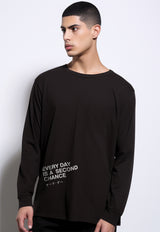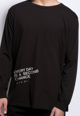 MTQ47 kaos lengan panjang hitam tangan panjang pria distro tulisan "everyday is second chance" hitam