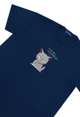 MTU12 Kaos Gambar Kucing Pria "cat quote" instacool lengan pendek navy