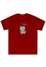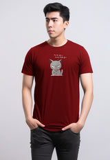 MTU13 Kaos Gambar Kucing Pria "cat quote" instacool lengan pendek maroon