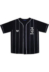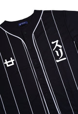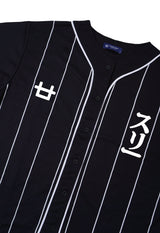 MTV04 Kaos Baseball Jersey Hitam Garis Logo 3 Katakana hitam