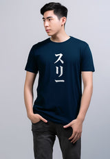 MTV50 Kaos Lengan Pendek Tulisan Jepang "3 katakana" navy