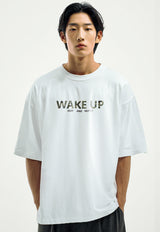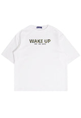 MTW55 Kaos Oversize Aesthetic Bahan Tebal "wake up" putih
