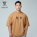 MTX76 Kaos Oversize Bahan Tebal Scuba "barbell sketch" khaki