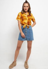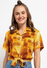Nade Japan FTA10 KCK Kemeja Crop Knot Abstrak Kuning