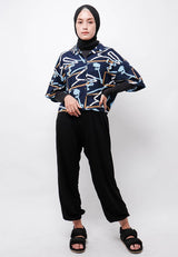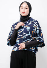 Nade FTA64 LKM Kemeja Oversize Wanita Tangan Pendek Abstrak 3 Navy