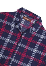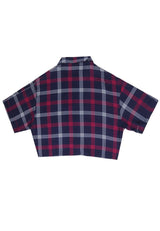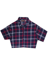 Nade Japan FTA66 LKM Kemeja Oversize Wanita Tangan Pendek Kotak Navy Pink