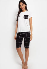 Nade Japan FT077 Piyama Set Instacool Wanita Kotak Hitam