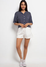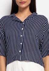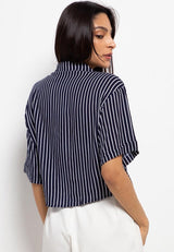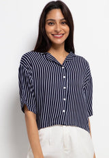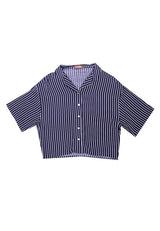 Nade Japan FT079 Kemeja pantai Wanita Kasual stripe navy
