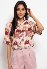 Nade Japan FT085 kemeja pantai Wanita Kasual abstrak coklat