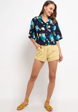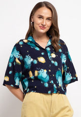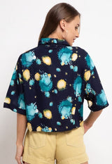 Nade Japan FT086 Kemeja Pantai Wanita Kasual Motif Tie Dye C5 Navy