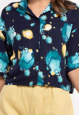 - Kemeja detail all over leaf print untuk statementable weekend style