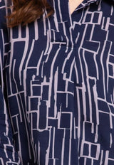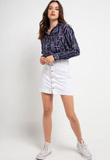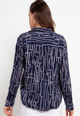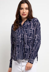 Nade Japan FT096 WFL Women Flanel Long Line Abstrak White-Navy