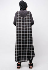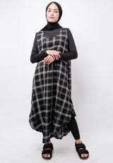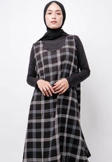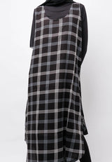 Nade Japan FTA67 LKDR Kutung Dress Wanita Kotak Hitam Abu