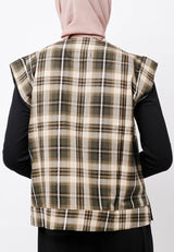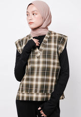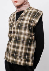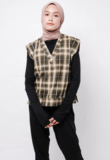 Nade Japan FTA70 Rompi Outer Wanita Vest Lucu Flanel Tartan Coklat Hitam