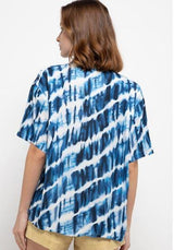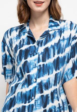 Nade Japan FTA33 Vcs Kemeja Rayon Tie Dye Slanted Kerah 2-in-1 Kemeja Piyama Wanita Biru