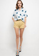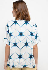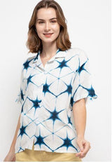 Nade Japan FTA35 VCS Kemeja Rayon Tie Dye Star Kemeja kerah 2-in-1 Kemeja Piyama Wanita Biru