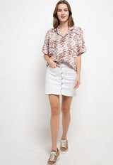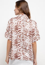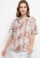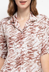 Nade Japan FTA39 VCS Kemeja Rayon Tie Dye Marmer Kerah 2-in-1 Piyama Wanita Coklat