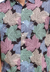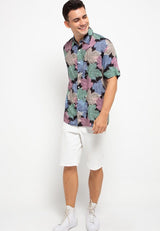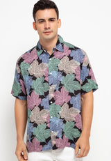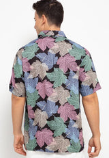 Nade Japan NTA22 Kemeja Pantai Pria Kasual Daun Hijau Biru