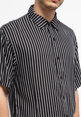 Nade Japan NTA38 Kemeja pantai kasual pria stripe hitam