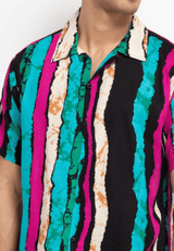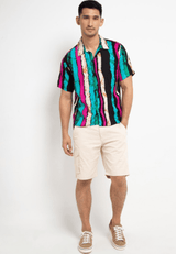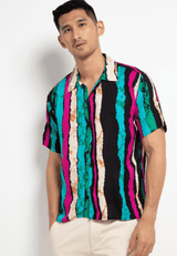 - Kemeja bergaya casual urban dengan kombinasi statementable print