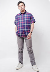 Nade Japan NTB12 Kemeja MKM Men Basic Kotak Navy Pink