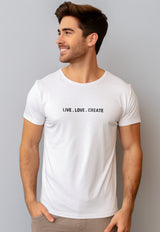 NTD77 kaos slim fit pria anti kusut lengan pendek "live love create" putih