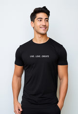 NTD78 kaos slim fit pria anti kusut lengan pendek "live love create" hitam