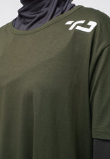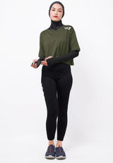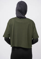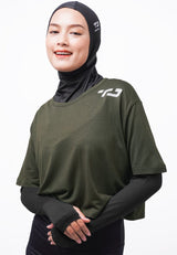 Td Active LSA38 Sport CL Crop Loose Wanita logo shoulder Hijau Army