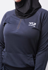 - Jaket running desain half-zip dengan tekstur lembut yang fleksibel