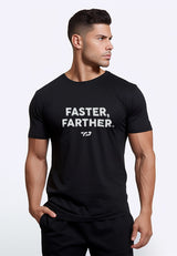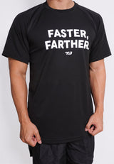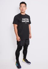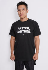 MS189 kaos olahraga tangan pendek pria lari running FASTER FARTHER hitam