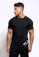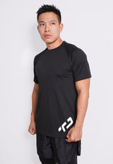 MS190 kaos olahraga tangan pendek pria raglan TD diag hitam