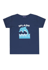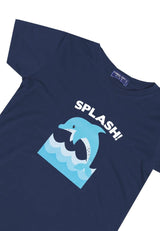 KU013 Kaos Anak Boy Girl Splash Dolphin Dolfin Navy