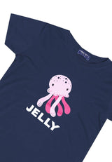 KU015 Kaos Anak Boy Girl Jellyfish Gurita Navy
