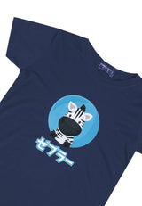 KU018 Kaos Anak Boy Girl Zebra Katakana Navy