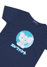 KU019 Kaos Anak Boy Girl Gajah Katakana Navy